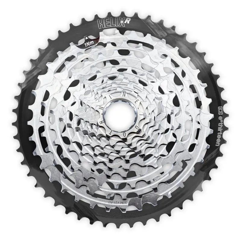 The HELIX R 11 Speed Cassette is an upgrade to any SRAM Eagle™ drivetrain, with more range than any other cassette on the market. The 9 tooth cog lets you step down one chainring size while keeping the same top-end gearing and provides not only better ground clearance but an overall lighter drivetrain. The aluminium one-piece 46 tooth cluster is easily replaceable so riders can keep their steel cluster for multiple seasons and freshen up granny as needed without buying a whole new cassette.